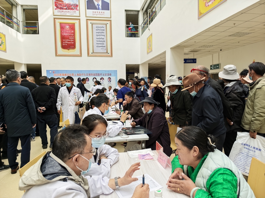 近日,由上海市卫生健康委党组书记、主任闻大翔带队,来自上海“以院包科”的12家市级医院和对口援藏五县的区卫生健康委相关负责人前往西藏日喀则,参加了第十届西藏自治区医学珠峰论坛。另有10年来多个批次的援藏医疗专家重返雪域高原,为当地百姓进行义诊咨询。