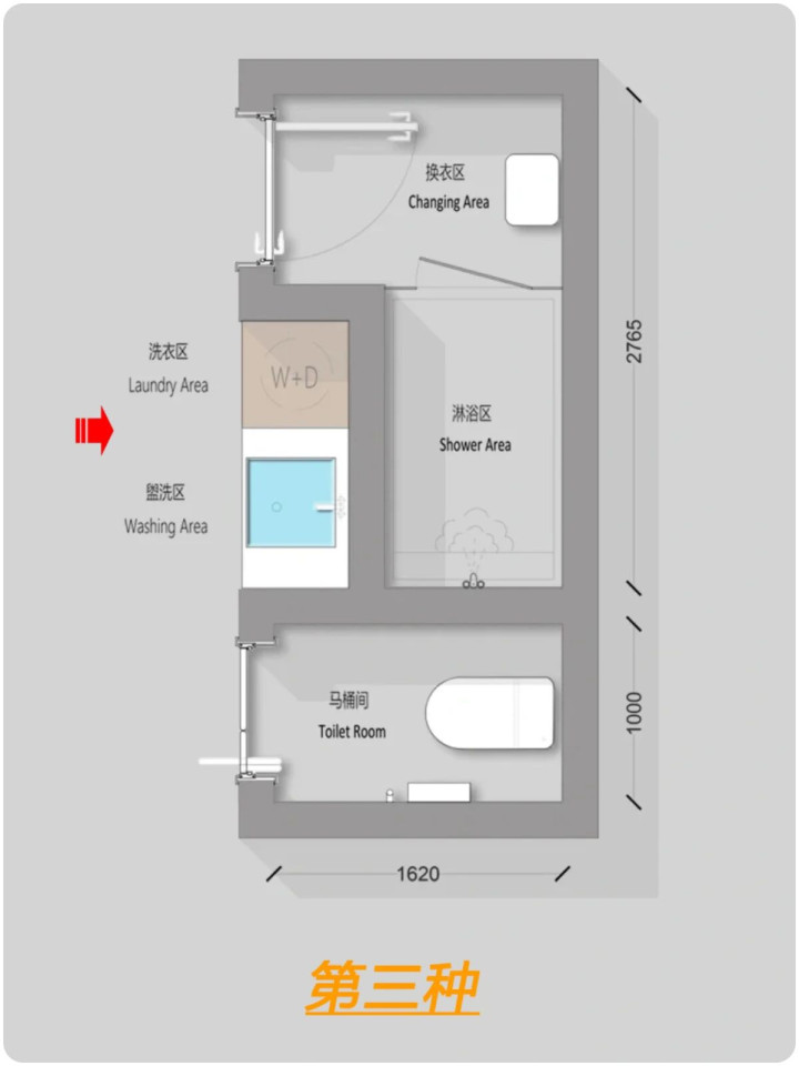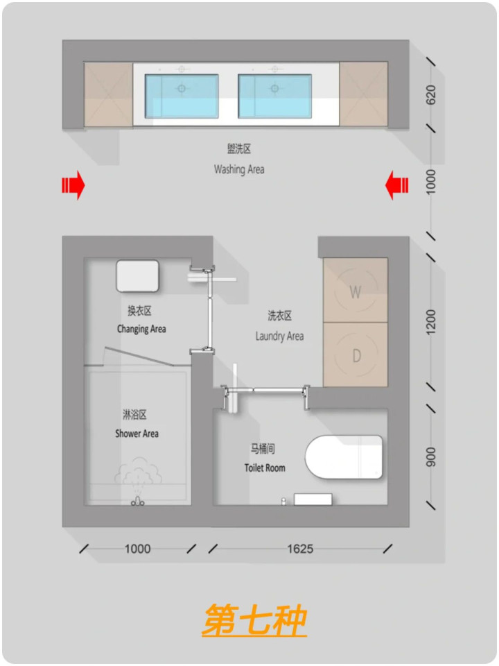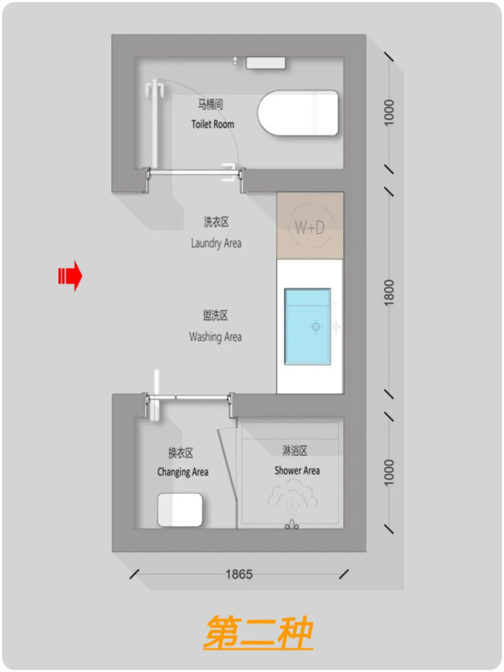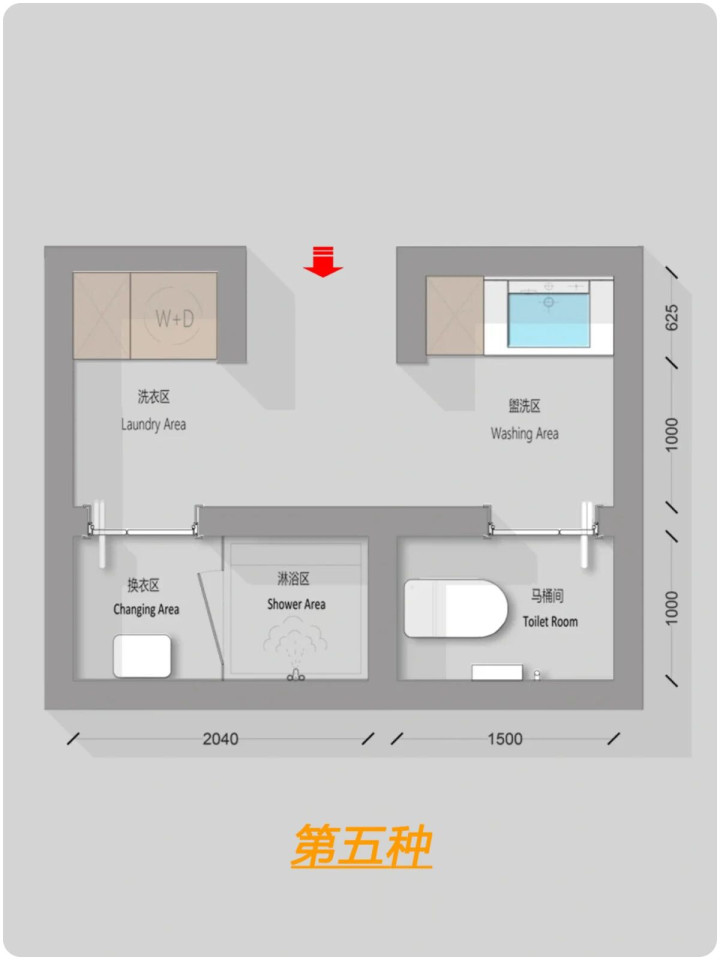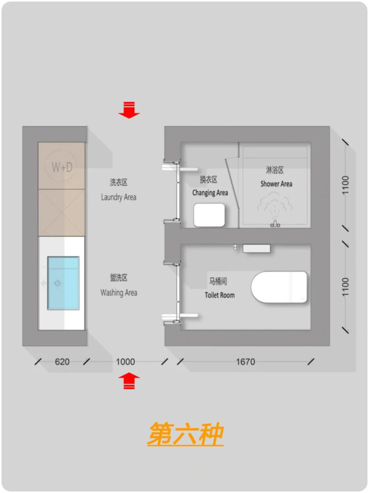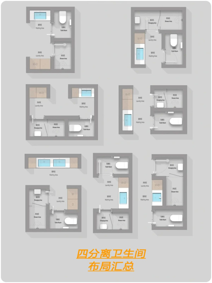 什么是四分离?卫生间,马桶间,淋浴间,洗漱区/洗衣区单独组成一个部分。为什么要四分离卫生间?能够满足同一时间段不同的生活使用需求,解决了传统卫生间一人上厕所全家都等的尴尬瞬间。四分离卫生间面积至少8平以上,如户型实在有约束性也可以改为三分离或者两分离。